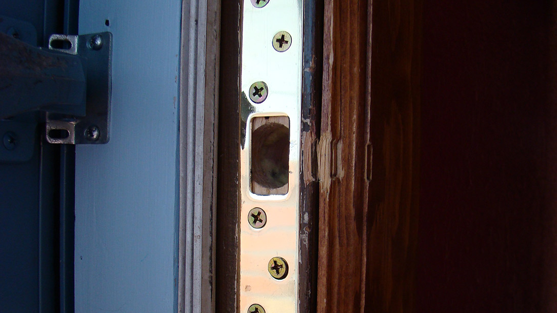 According to the FBI, 90% of home intrusions occur through doors and 6% occur through windows. Even if you lock your doors religiously, most standard door hardware won’t withstand a hard kick. The best way to prevent this type of entry—and another great way of establishing your home as a hard target—is to harden your front door.