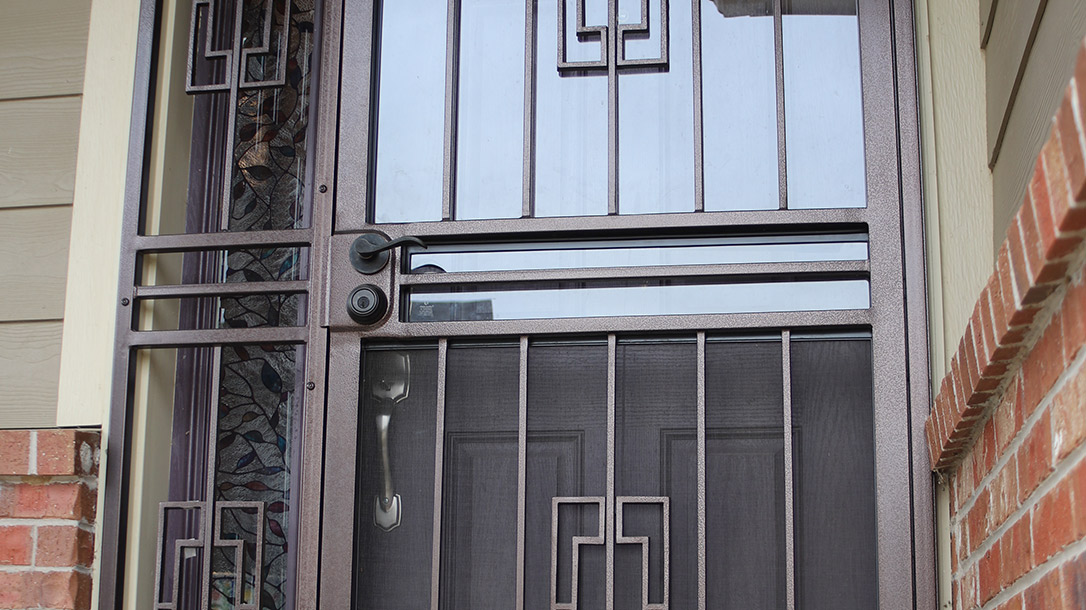 One excellent way of bolstering your front-door security is with a security gate. Made of sturdy steel, it can also serve double duty as a screen door, allowing fresh air in without letting your guard down.