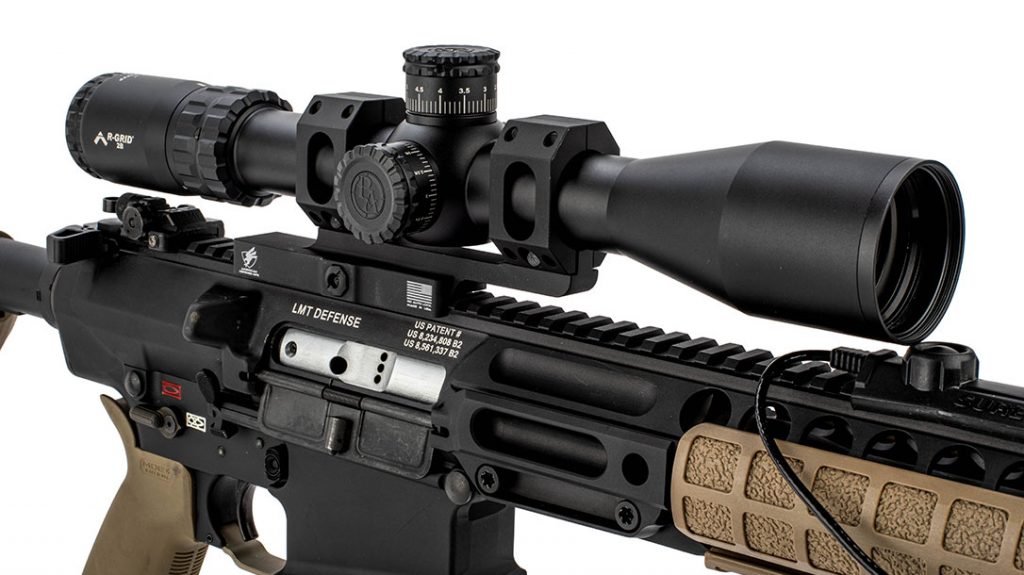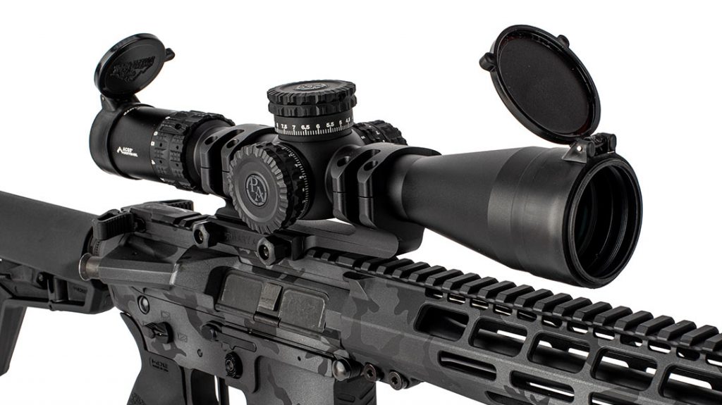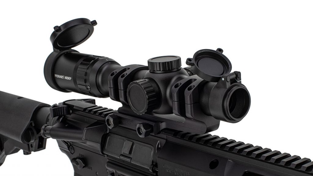 Primary Arms has a good reputation with law enforcement agencies, particularly because of optics like the SLX 1-5×24 riflescope. This first-focal-plane optic takes the proven performance of PA’s Gen III scope body and upgrades the internals to provide first-focal-plane functionality. This scope features full red reticle illumination, a quick focus eyepiece and finger adjustable turrets covered by turret caps.