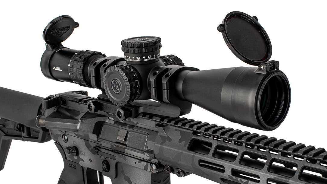 The ACSS Raptor 5.56 first-focal-plane reticle has been calibrated to be true at every magnification. Additionally, the reticle’s features include automatic ranging out to 600 yards, moving target leads and a large, fast horseshoe that easily draws your eye to the target. This caliber-specific reticle is tuned for 5.56mm NATO, 5.45x39mm and .308 Win. Full red reticle illumination is provided by a single CR2032 battery. Also, a total of 11 settings take the reticle all the way up to daylight bright. All lenses are fully multi-coated for maximum light transmission, and the 6063 aluminum body is Type II hardcoat anodized in matte black.