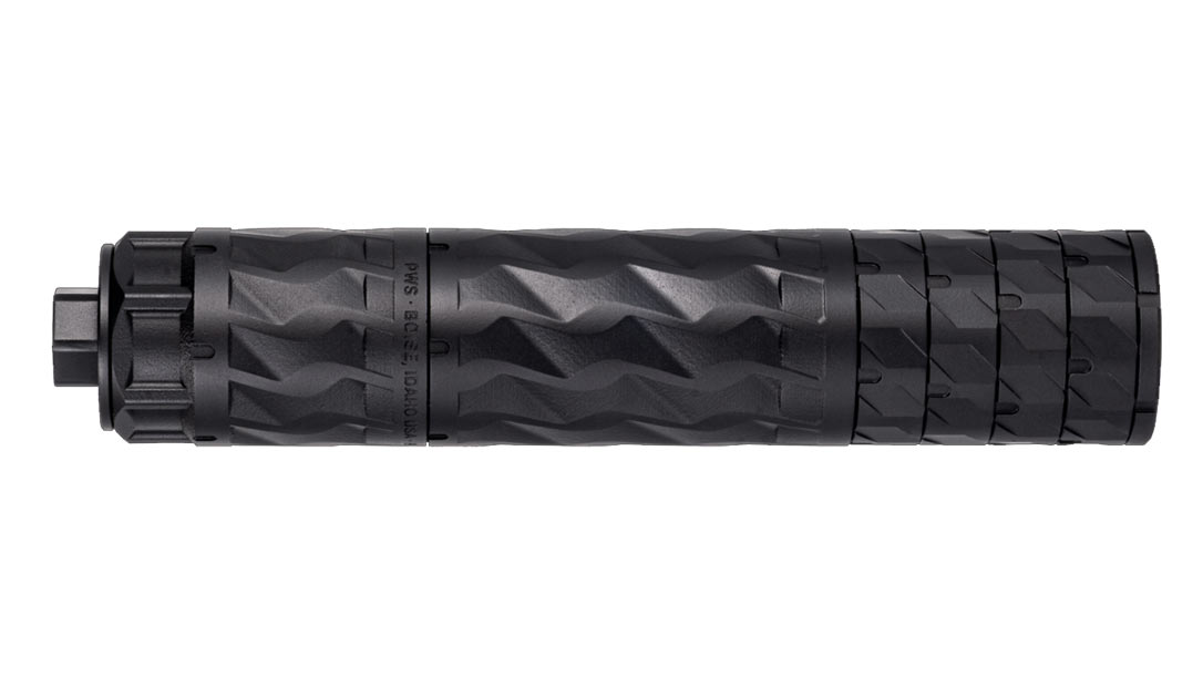 A PVD coating on the outside provides a durable, long-lasting finish. Additionally, the modular design features removable baffles to modify length (between 6.5-8.2 inches) and noise reduction ratings. Similarly, the taper-threaded baffles prevent carbon locking and loosening between baffles. Likewise, symmetrical internal baffle notches increase accuracy, while exterior textures dissipate heat mirage.