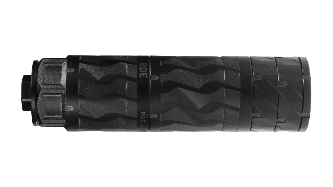 The BDE 9mm features a 1.45-inch diameter and is compatible with calibers up to .300 BLK Sub-Sonic. The modular design allows adjustability from 5.1-6.26 inches and offers an adjustment in noise reduction ratings. Correspondingly, taper-threaded baffles help to prevent carbon locking and loosening between baffles.