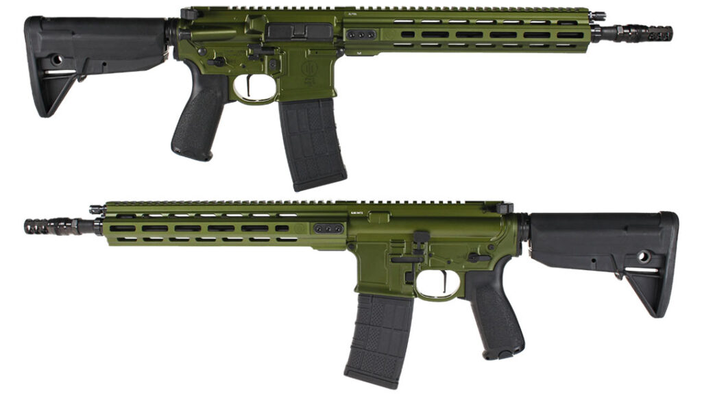 Bravo Company provides the furniture with a textured pistol grip and an adjustable buttstock with QD mount. In addition, the lower features ambidextrous controls for right- or left-handed shooters. Rounds are sent downrange via the TiggerTech Duty flat bow, single-stage trigger with a 5.5-pound pull.