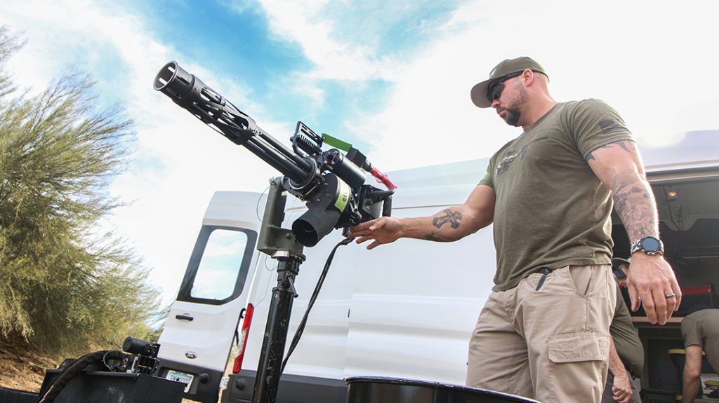 Profense has established itself as the premier manufacturer of the M134. Iacobucci shared that their guns can be found “in every time zone across the world.” One advanced feature that the PF M134 and the PF 556 have is the ability to be operated remotely. This creates an opportunity to engage targets with the gun while the operator is in a secure and safe position.