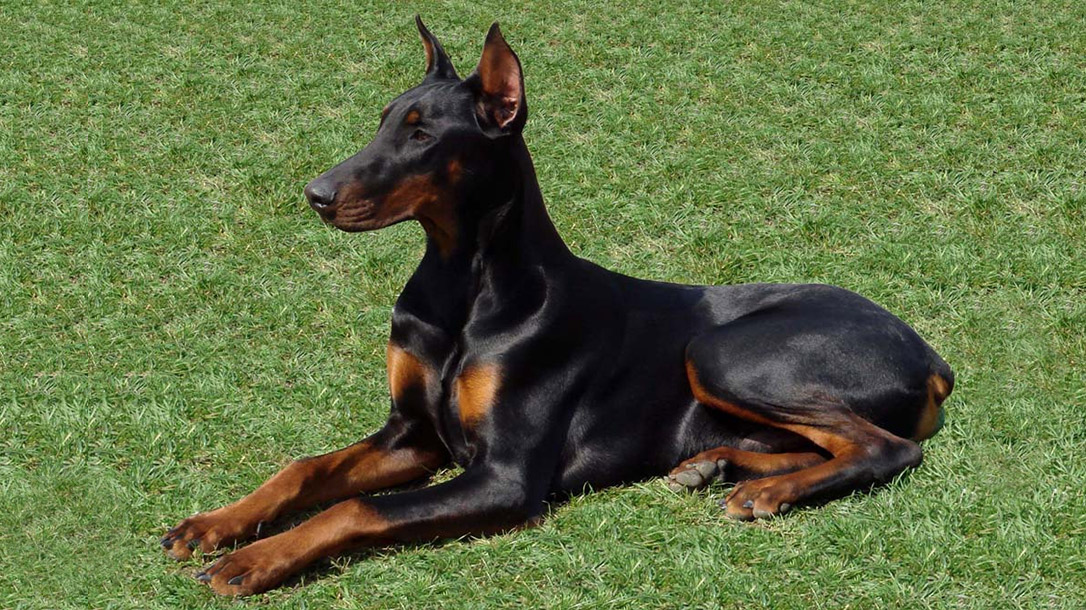 “Extremely fast and highly intelligent, the Doberman is pure muscle and ferocity. Any home with a large backyard or lots of land for this breed to run is ideal to stop a thief before he even has a chance to pick a door lock or shatter a window in your home.”