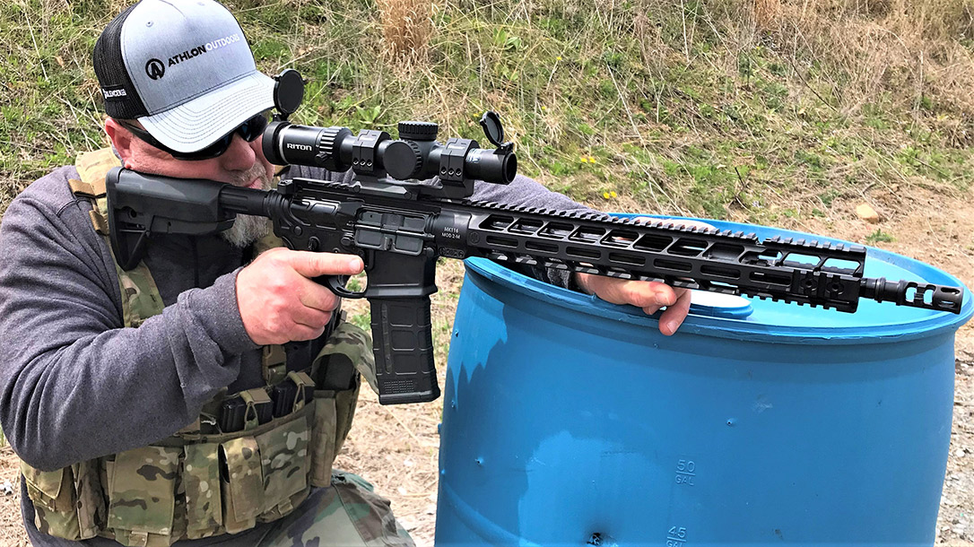 The PWS MK116 MOD 2-M was tested with a Riton X5 Tactix 1-6x24mm optic mounted. The Riton X5 Tactix features daylight bright illumination and capped, zero resettable turrets.