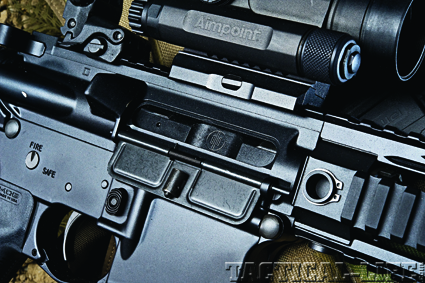 The upper receiver rail matches nicely to the forend, allowing for the use of SOPMOD-compatible equipment.