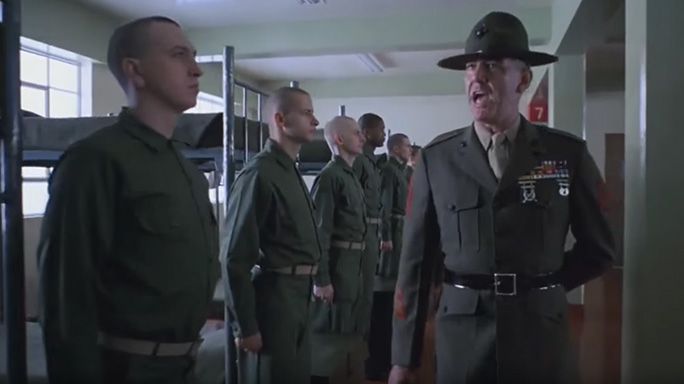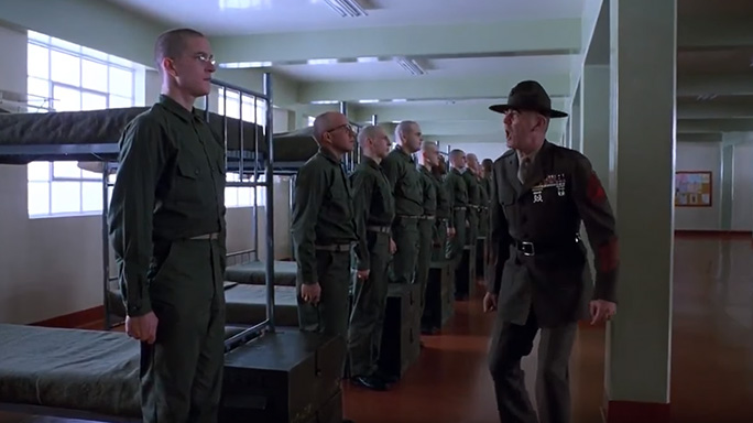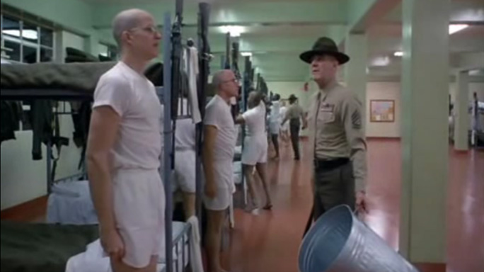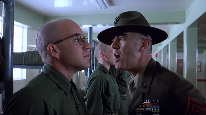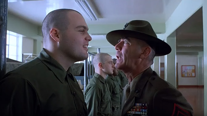 “How tall are you private?” | Private Cowboy: “Sir, 5-foot-9, sir!” | Sgt. Hartman: “5-foot-9, I didn’t know that stacked shit that high! You trying to squeeze an inch on me somewhere, huh?” | Pvt. Cowboy: “Sir, no, sir!” | Sgt. Hartman: “Bullshit! It looks to me like the best part of you ran down the crack of your mama’s ass and ended up as a brown stain on the mattress!”