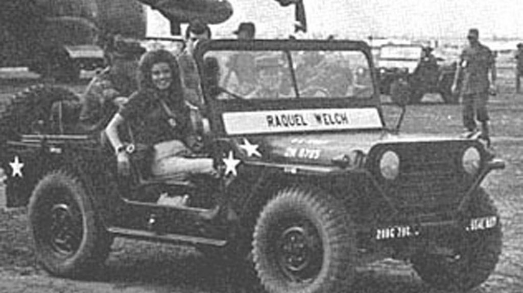 Ever hear the story of when Raquel Welch visited troops in Vietnam? It goes something like this. The whomp, whomp, whomp of the Huey helicopters made conversation almost impossible. Minutes before, they had taken off from the Air Force side of the field at Da Nang. They were flying lead with two gunships as cover. On the right, the Huey Cobra pilot came within a rotor’s distance from the open-sided chopper. “What the hell are they doing?” yelled the door gunner, pulling his M60 machine gun inside the ship to protect it. Those with headsets could hear the pilot chewing out the sloppy flying of some FNG lieutenant.