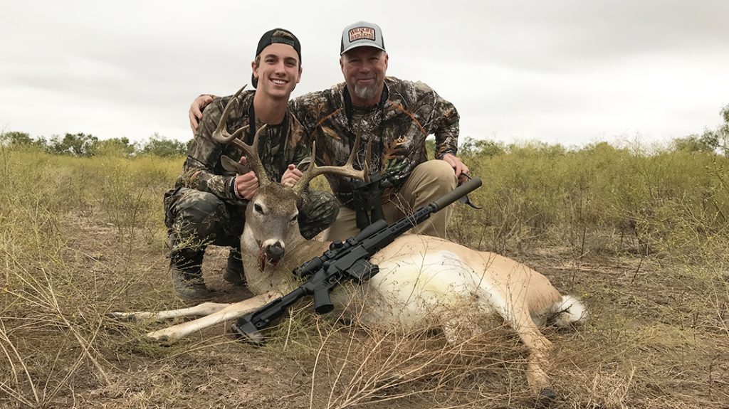 The blind erupted with backslapping and congratulations while the guide and I kept our eyes downrange on the crumpled buck. Ethan shucked a fresh round into the 700 CP, but there was no need, as the deed was complete. Smiles, fist bumps and hugs only experienced by fathers and sons commenced.