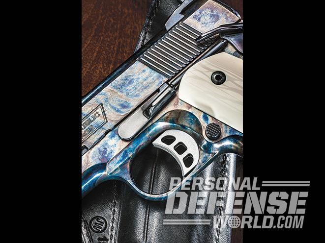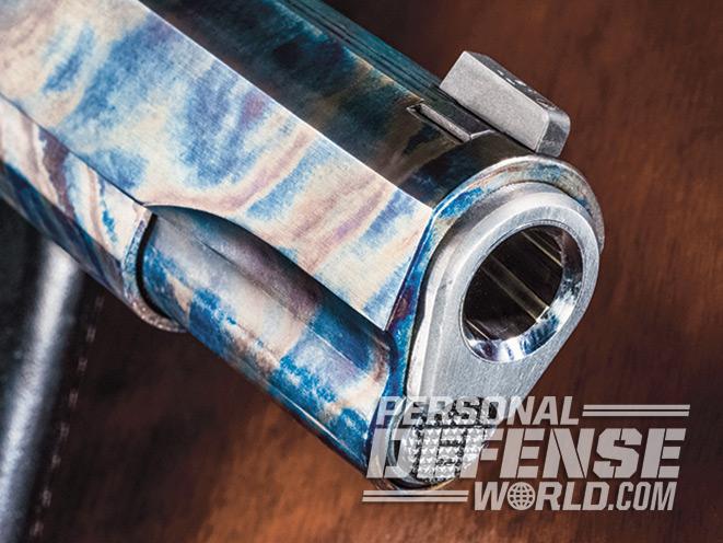 While I considered going with a blued finish or even the Damascus steel option on the slide, I ultimately decided to go all-in and have both the frame and slide color casehardened. Also, although I normally like forward cocking serrations on the slide of a 1911, I decided to forgo them on this one to keep the overall lines as “classic” as possible.