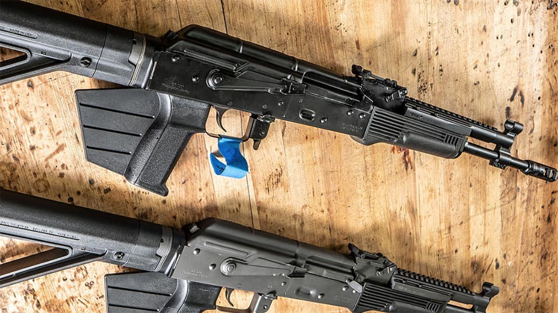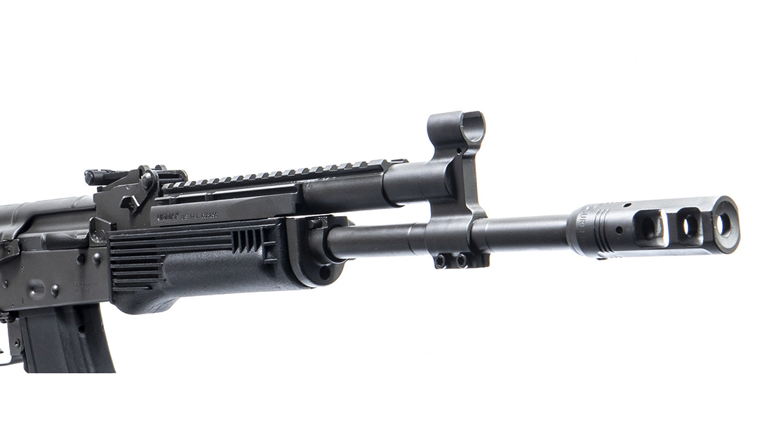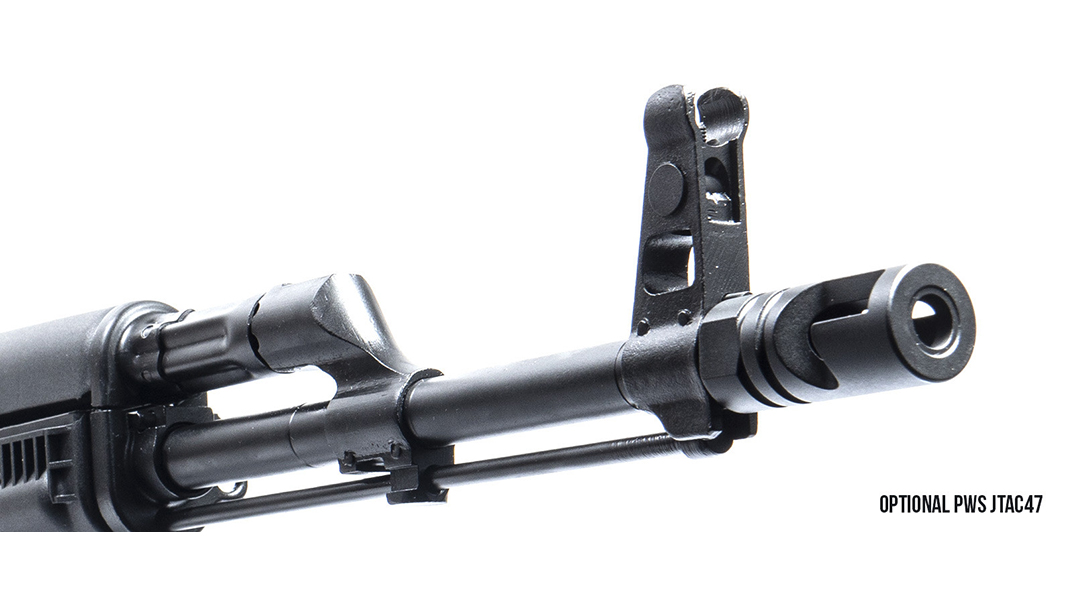 The first two rifles in the Rifle Dynamics California Airlift lineup are the RD702-CA in 7.62×39 and the RD502-CA in 5.45×39. Both models feature the Generation 3 Venom Tactical front sight block/gas block combo; UltiMAK scope rail; and a permanently attached Surefire PROCOMP muzzle brake. In addition, the rifles have a 14.5-inch barrel; Aim Sports featureless AK grip; and a Fuller rear sight. These rifles are priced at $2,200, but they can also be customized at an additional charge with a ALG AKT-EL trigger; SLR Rifleworks 10.5″ rail set (M-Lok or Keymod); Krebs Custom enhanced safety (with bolt hold open); Evolution Defense Group handguard; and AK side rail installation.