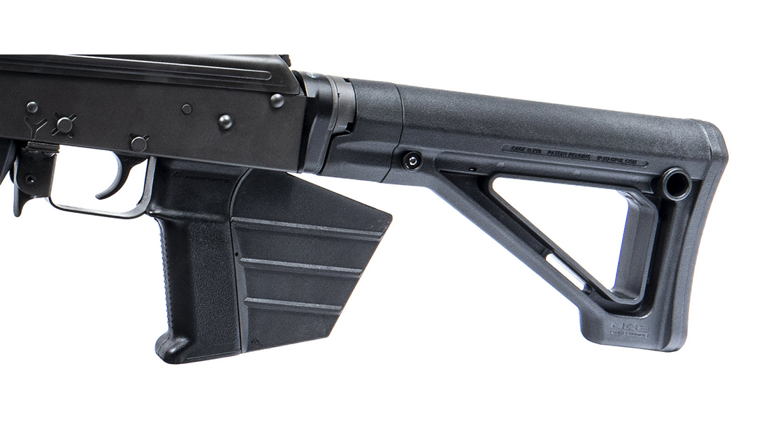 The third Rifle Dynamics California Airlift rifle is the AKM-CA. Offering a more traditional setup, the AKM-CA is available in 7.62×39 with a 16-inch barrel and features black polymer furniture; tuned action and trigger;, standard muzzle device; Fuller rear sight mod; Aim Sports featureless AK grip; premium finish and a side rail mount for optics. Various customizing options are available for $50. MSRP: $1,450.