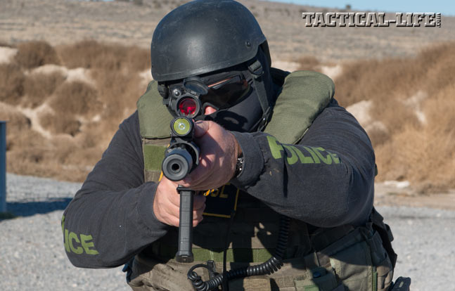 For transitions and work inside of a shoothouse, I added a Vickers sling from Blue Force Gear. Patrol rifles also need a light, and the Streamlight TLR-1 has become one of the most popular in law enforcement. It is simple, reliable, affordable and puts out plenty of light. I attached the new TLR-1 HL to the top rail, in front of the sight. This allows for ambidextrous operation with the sight up or down. The switch allows for momentary or constant operation along with a strobe feature.