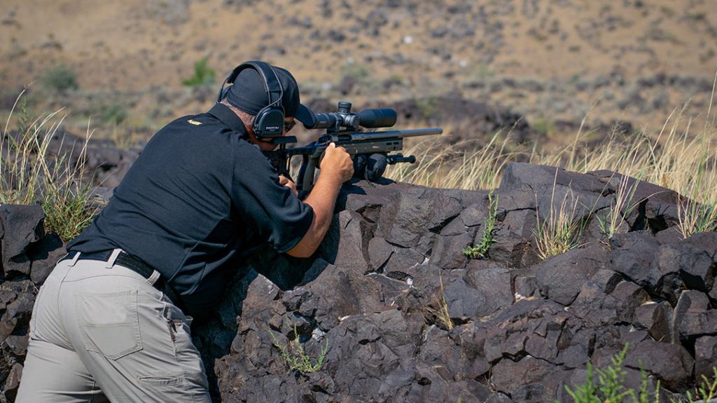 Spotter up. Steel silhouette at 1,075 yards. Half-value wind, hold right edge. Send it. The shooter presses the trigger, and the shot rings out. About 1.9 seconds later, the round impacts the steel, and a faint sound echoes through the canyon back to the shooter. A quick cycle of the bolt and the shooter is back on target ready to send another one. This scenario was played out countless times recently during an introduction to precision rifle class I ran in Idaho. The class also gave me some trigger time with the Rock River Arms RBG-1S.
