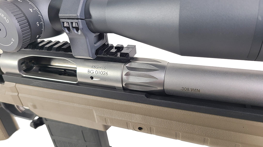 The rifle is available in a few configurations. You can get it in .308 Win./7.62x51mm and 6.5 Creedmoor, along with a 20-, 22- or 24-inch barrel. You also have stock color options including black, green, or tan. Rock River Arms sent me a .308 RBG-1S with a tan stock and 24-inch barrel for testing. This rifle is fed by a 10-round AICS-pattern detachable box magazine.