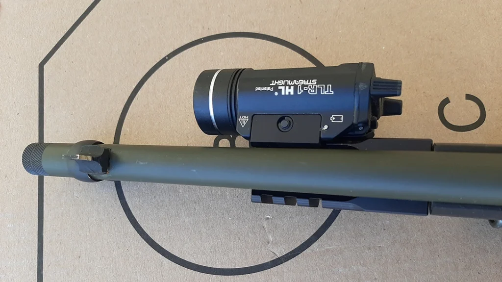Attaching a Streamlight TLR HL1 gave great results and was easy to remove/remount as needed. Its 1,000 Lumens allowed for clear target ID and illuminated the iron sights for effective low-light use.