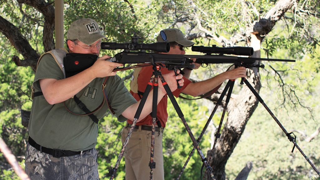 The first day of the SAAM course was spent in the classroom and on the range employing skills taught by owner Tim Fallon and retired U.S. Navy SEAL Doug Prichard. Most of the shooting was done from the prone position, with a hefty dose of proper use of supports like tripods and backpacks. We used six of the 21 ranges on the 12,000-acre Texas Hill Country ranch. Most targets were between 100 and 700 yards, but we did spend some time taking our .308s out to 1,000 yards. It was thrilling to dial in adjustments on our 3-15x50mm Steiner M5Xi scopes and make hits at distant ranges with lightweight, thin-barrel rifles.
