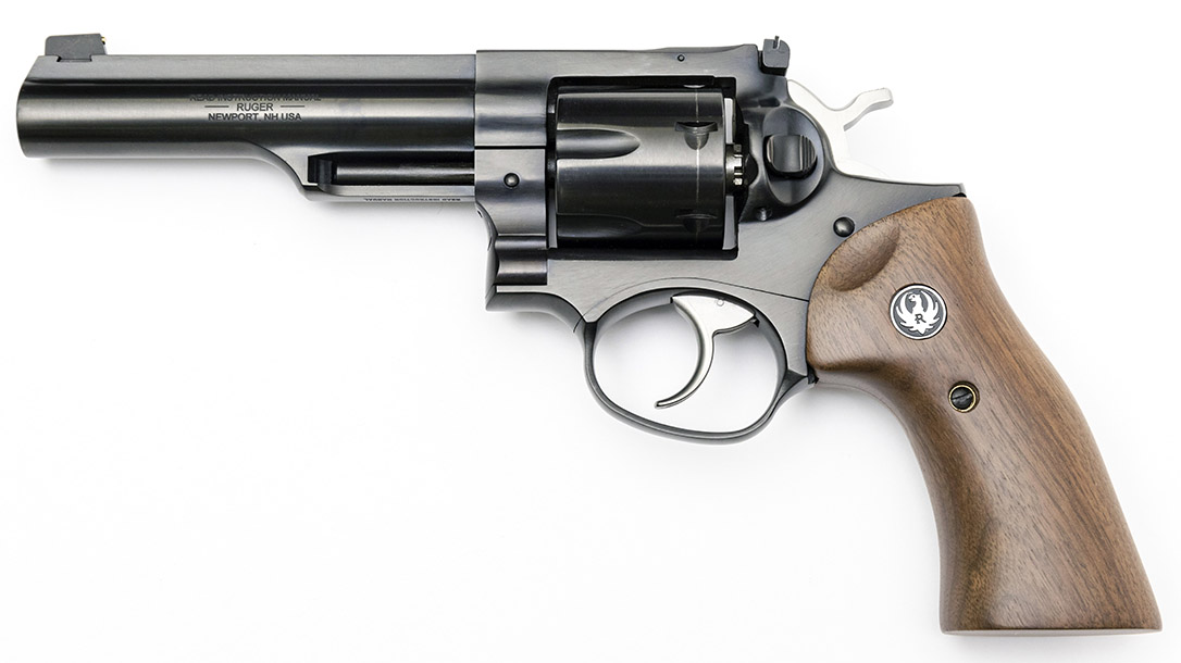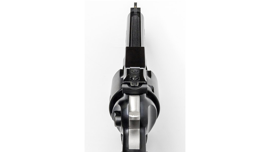 The smooth, Roper-style grips are ergonomic and feel good in my medium-size hands. Their shape also helps absorb recoil and enhances shot-to-shot recovery in rapid fire. They’re attractive, too, with what looks like a hand-rubbed finish and Ruger medallions. Overall, the gun gets very high marks in the fit and finish department. It comes in a plastic case with a safety lock, a takedown pin, the owner’s manual and moon clips.