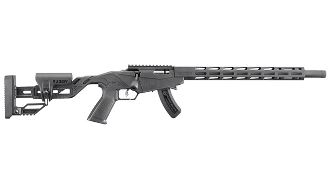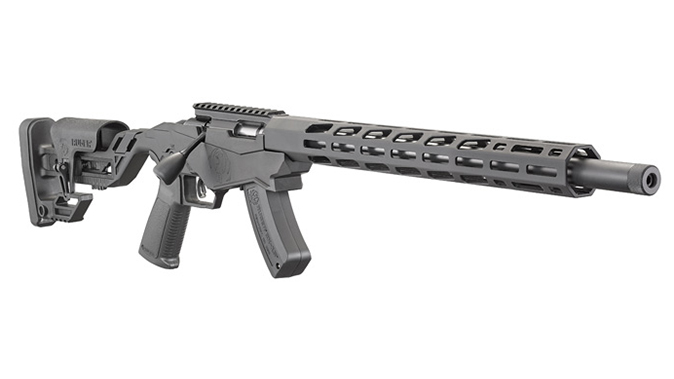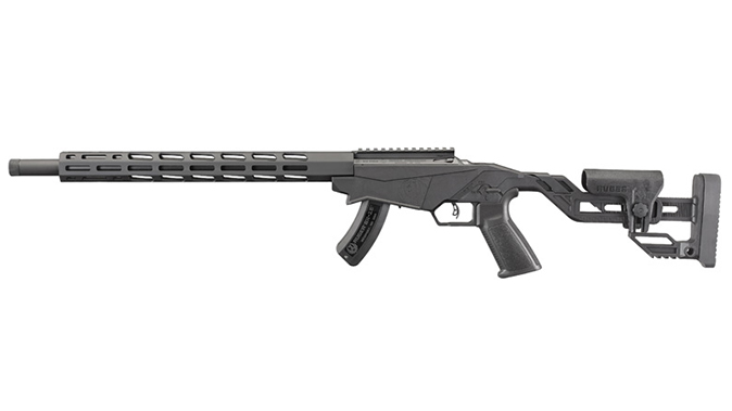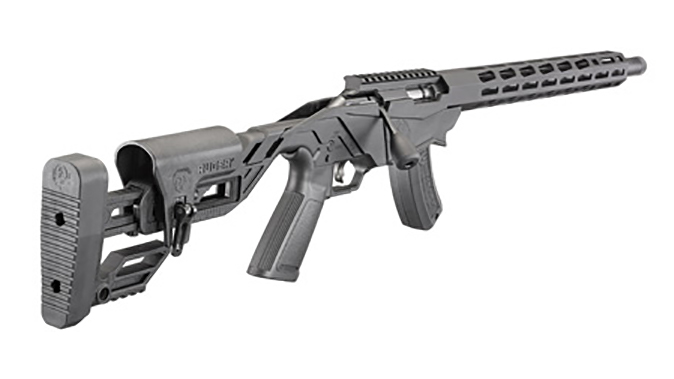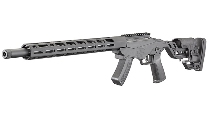 Also included in this rifle is the Ruger Marksman Adjustable trigger, which has a pull weight range of 2.25 to five pounds; adjusting wrench stored in the buttstock compartment; Ruger’s own AR-pattern pistol grip and safety selector for maximum control and access to the 45 degree, reversible safety selector; and an anodized Picatinny scope base that includes 30 MOA elevation for increased long-range capabilities out of the box.