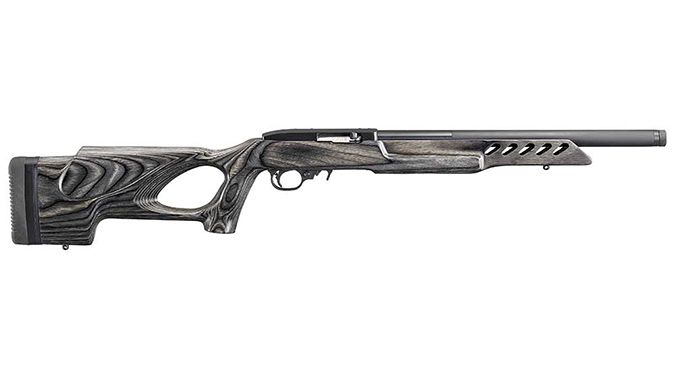 Also new in the 10/22 lineup is the 10/22 Target Lite which features a black laminate thumbhole stock; cold hammer-forged barrel tensioned in a black anodized aluminum alloy barrel sleeve; and a BX trigger. Meanwhile, the stock has a rollover comb, flat forend and installed swivel studs. MSRP: $649.