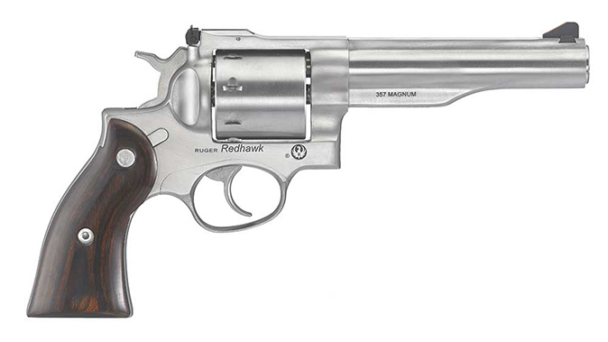 Another new gun on tap is the iconic Ruger Redhawk with sleeve and shroud barrels. The presser says the barrel sleeves are cold hammer-forged by Ruger, while the sleeve and shroud barrel assembly offers “tight tolerance control.” The new Redhawks come in 4.20-inch and 5.50-inch barrel lengths. The cylinders are un-fluted and boast an eight-round capacity in .357 Magnum. The MSRP here is $1079.