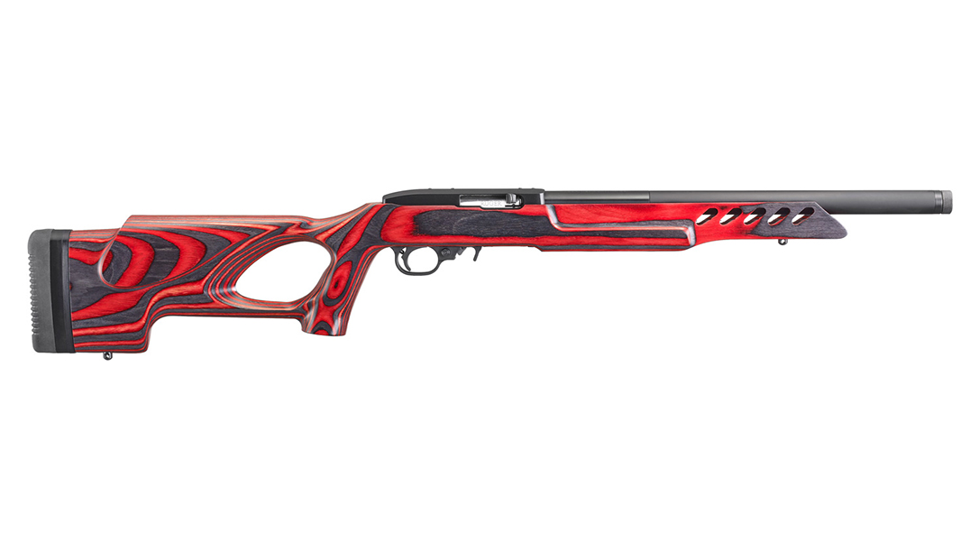 The new 10/22 Target Lite is a top of the line offering from Ruger. Featuring the BX-Trigger with a light, crisp 2.5-3 pound trigger pull weight and a cold hammer-forged barrel tensioned in an aluminum alloy barrel sleeve, this new configuration is paired with a red and black laminate thumbhole stock, and should appeal to shooters looking for performance, reliability and style.