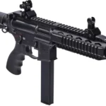 At about the same time, KBP also developed the PP-2000. Designed to handle hot-loaded 9x19mm AP ammunition, the gun can also fire all standard ammo types in the same caliber. It’s configured with the magazine seating in the grip, and early prototypes were designed so a spare magazine could be used as a rudimentary shoulder stock. Current production models of the PP-2000, now in use by various police units across Russia, are issued with more conventional (and slightly more comfortable) side-folding shoulder stocks.