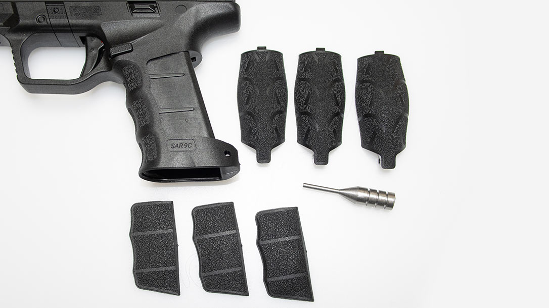 While some pistols ship with the bare minimum, SAR USA provides a fairly complete kit. In addition to the nine potential grip setups, a metal punch is included to drive out the roll pin to facilitate those changes.