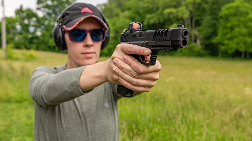 The thumb safety is a bit small and challenging for me to disengage, but other shooters might not have any issues with it. The safety probably isn’t a deal breaker for most people, especially newer shooters wanting to try their hand at shooting sports. The time it takes to disengage the safety isn’t long enough to impact most shooters’ results. For high-level competitive shooters, any extra time struggling to disengage a safety can be costly.