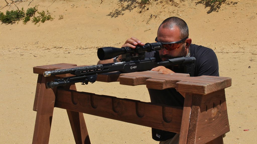 Cycling the bolt was effortless regardless of which hand I used, and as long as my dope was right, it was a hit every time. I ended my range session by seeing how far out I’d be able to dial and maintain at least 2-MOA accuracy. To my amazement, I hit reliably at 300 yards with the SK Rifle Match ammo and even grouped decently at 400 yards, albeit in the dirt because I was out of adjustment.