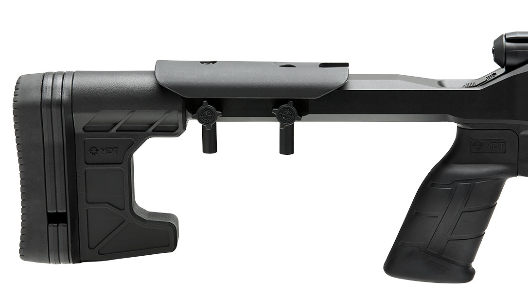 On the backend, the length of pull and comb are adjustable to help it fit a variety of shooters and scope options. Speaking of scope, this B22 comes with a pre-mounted 20-MOA rail. So, we attached a 6-24x Truglo Eminus using an EAW Black-Line adjustable mount.