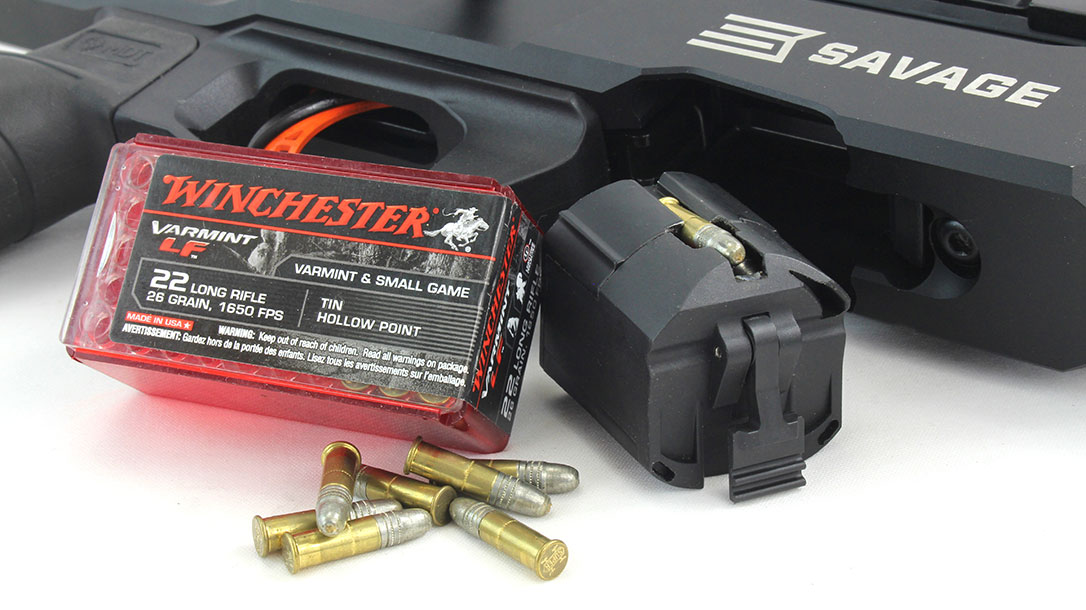 Ammunition is supplied through a rotary-style magazine. This has always been the best answer to working around the .22 LR’s protruding rim and ending jams in feeding devices.