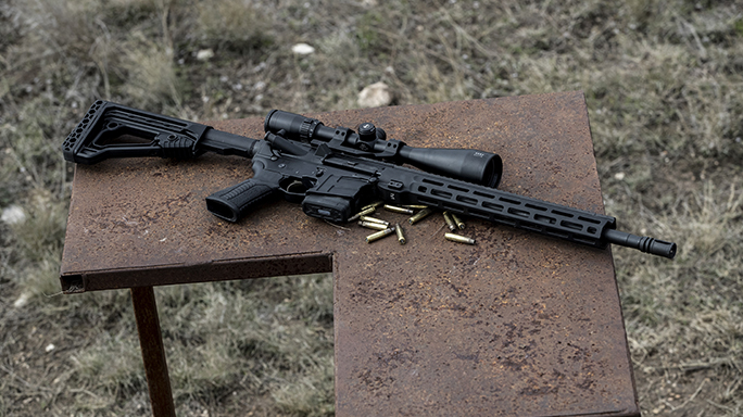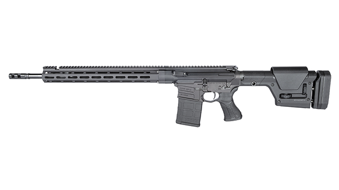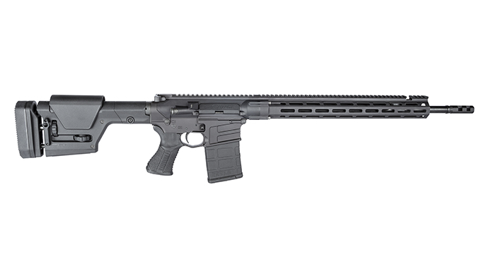 Finally, the Savage MSR 15 Patrol rifle in .223 Rem. features a Mil-spec upper and lower receiver, a 16 1/8-inch barrel with a 223 Wylde target chamber, 5R rifling and a Melonite QPQ finish, a Mil-spec trigger, a BLACKHAWK! handguard, pistol grip and adjustable buttstock, an AXIOM Carbine Stock, a custom A-frame gas block front sight and a BLACKHAWK! flip-up rear sight. With a MSRP of $852, it’s the most affordable rifle in the line.