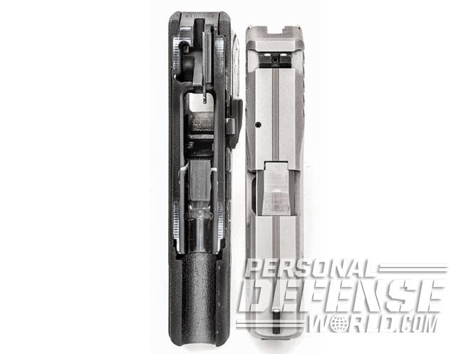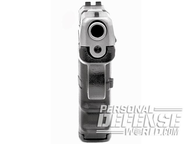 The trigger pull on the test gun averaged 6.5 pounds. Travel is a full inch with no stacking and a crisp break. It does take nearly a full release of the trigger (0.75 inches) to reset, but the DAO has second-strike capability, a definite plus, along with no magazine disconnect, so it can fire a chambered round with the magazine removed.