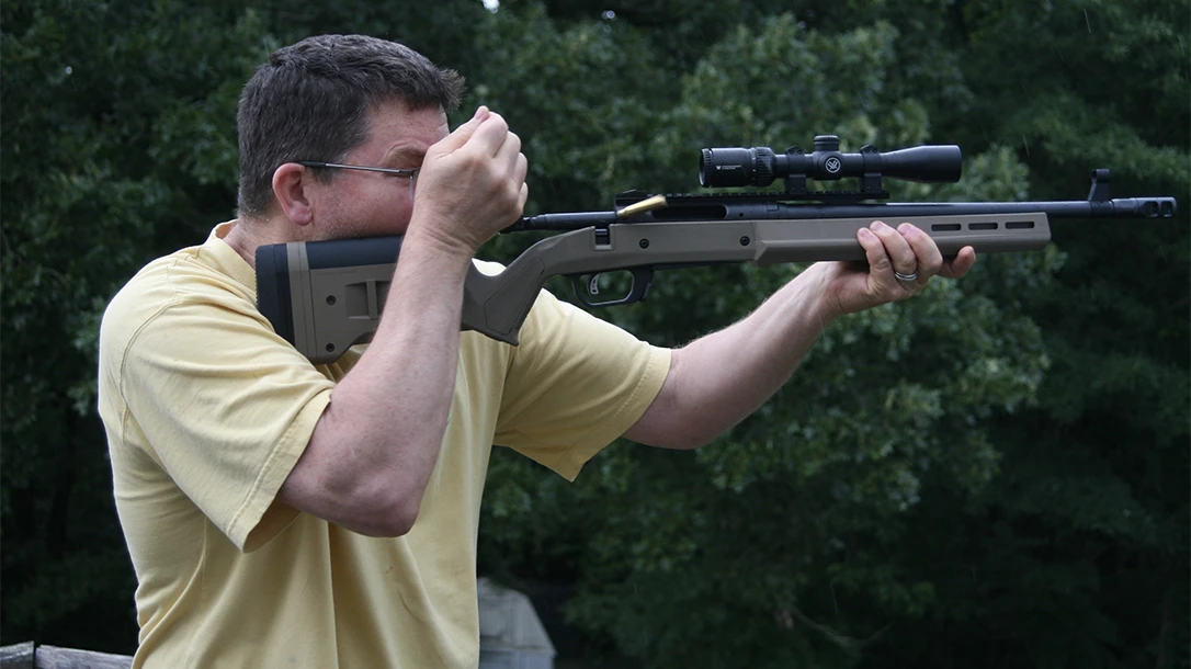 Cooper stressed keeping both eyes open when shooting scout rifles. He also emphasized that the rifle’s stock should sit at a height that “keeps the cheek at a precise and consistent placement on the stock.” Cooper also added that, “the advantage of the sighting system is so startling it can only be appreciated in actual firing experiences.” This is why a rifle that allows the shooter to chamber a fresh cartridge without losing sight of the target is another attribute of these scout rifles.