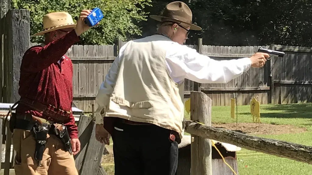 You’ll want to dress properly for a Wild Bunch match. Traditional cowboy duds or even early 1900s military-style outfits will work. I added a “Smokey” campaign hat to my costume. Your leather must also conform to requirements for looks, function and safety. The holster must cover the barrel and slide from muzzle to ejection port, with no open front. You can’t use metal or plastic rigs, and no shoulder or cross-draw holsters are allowed. You can also use military-style single or double magazine pouches that must cover at least 2 inches of the magazine, and they must be worn opposite the holster.