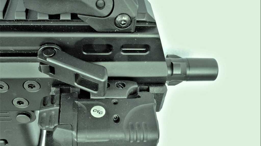 The U.,S. Army and police forces in the United States, along with six separate European nations, have already adopted various versions of the APC9. So I expected the APC 9K to comprise a well-made gun. Everything about this firearm, from the back of the brace to the crown of the muzzle, shows manufacturing with great care. The upper receiver shows no tool marks, sharp edges or corners on its exterior or interior. The polymer lower receiver was well-made and sturdy. It held the ambidextrous fire control group, and the bolt release and other controls were very positive in their functioning.