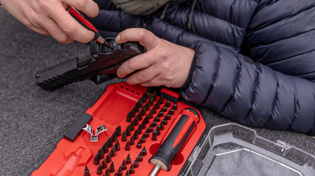 Mounting an optic is an easy enough process, but it is crucial to tighten your optic plate screws and optic screws to the recommended amount to ensure your optic doesn’t come off or shift zero. I trust Real Avid Tools to get the right amount of torque to set my optics up for competition. The Smart Drive 90 is a handy kit to keep in your range bag and makes optic mounting a breeze. (realavid.com)