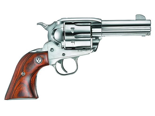 The Montado is built on Ruger’s New Vaquero frame and features a short 3.75-inch barrel. The hammer spur is wide, checkered and slightly lower than the traditional Vaquero hammer spur for fast, one-handed cocking. The reverse indexing pawl makes loading and unloading easier than traditional single-action revolvers. For smoother holstering, the front edge of the cylinder is beveled.