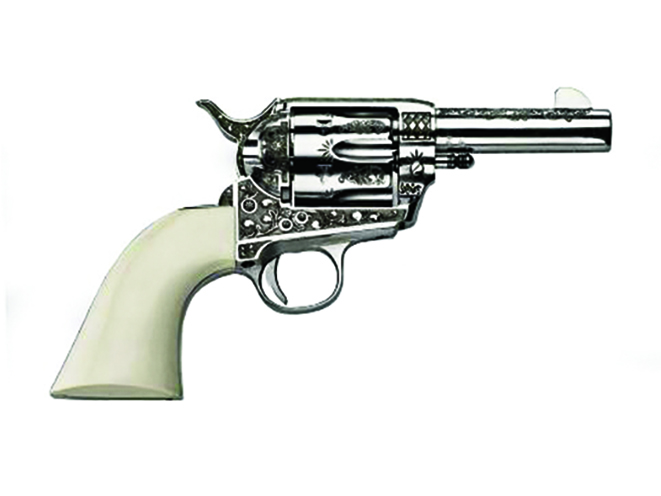 EMF’s Deluxe Sheriff, part of the company’s 1873 Great Western II line, is made of stainless steel with factory laser engraving covering three quarters of the revolver. The faux-ivory grip panels make this hideout gun pretty sharp looking. The tiny Deluxe Sheriff also features short 3-inch barrel and is made for EMF by Pietta in Italy.