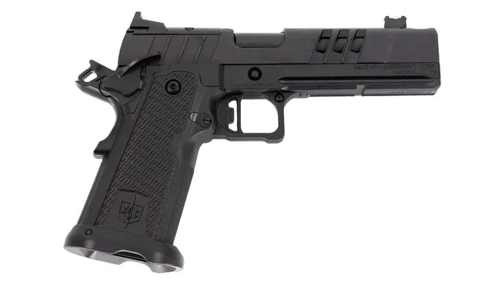 Tisas is coming out with a 45 ACP caliber 1911 with a lot of modern features and design elements. There’s a Picatinny rail for mounting a light, a Novak front sight, and a Glock dovetail rear sight. It is optics-ready with the Holosun 507k or RMSc footprint. Depending on the red dot, the iron sights will co-witness.