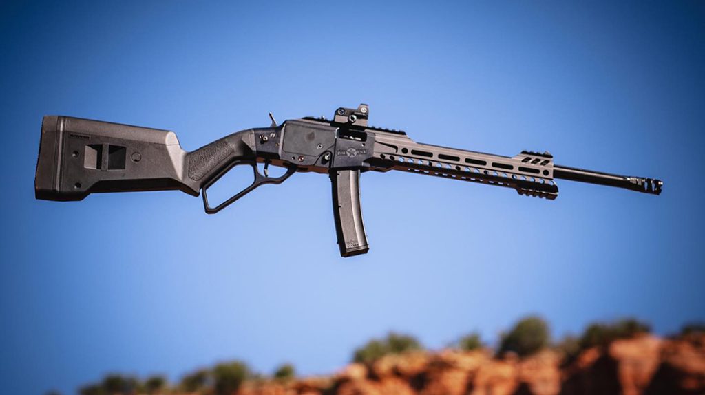 Well, we gotta admit. We didn’t see this one coming. Patriot Ordnance Factory made a hard pivot and introduced its first ever lever-action rifle. The Tombstone comes initially chambered in 9mm. It features a 20-round magazine, of the detachable box variety. A 16.5-inch free float barrel, XS Ghost Ring sights, M-LOK surfaces highlight this interesting package.
