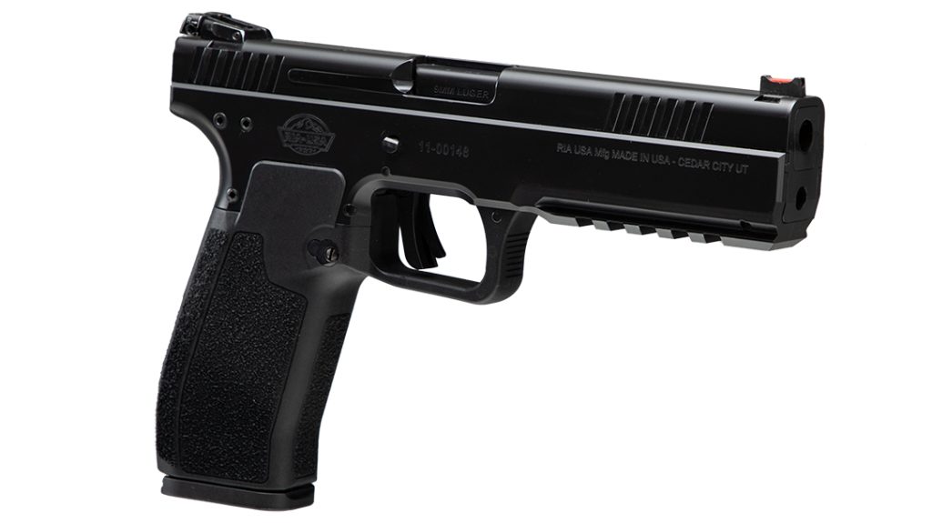 “American made … revolutionary.” That’s how Rock Island describes its new pistol, the RIA 5.0. It features an interesting patented RVS recoil system, reportedly maximizing barrel mass and linear movement for soft recoil, according to RIA.