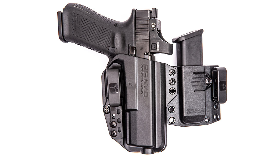 Bravo Concealment sent me their IWB Torsion 3.0 and magazine carrier. The sidecar mag holster can be attached to the holster or carried separately. Unlike the other holsters mentioned here, the Bravo Concealment Torsion 3.0 is an injection-molded polymer. This gives the holster unusually clean and precise lines.