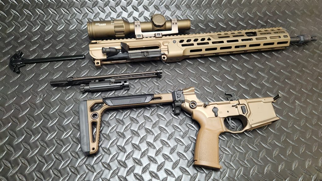 I was fortunate to get the MCX-SPEAR-LT in for some early testing. It was everything you would expect from SIG. The fit and finish on the gun are superb and the ergonomics are solid. After an extensive two days on the range with it, there were no hot spots or rub points on my hands. The ambidextrous design of the gun is well done. The features are well integrated into the design and easy to manipulate. The gun they sent included their Tango 6T 6×24-30mm scope, which was the perfect fit. On the bench, the gun gave me ¾-inch groups with match ammo and ran flawlessly the entire testing session.