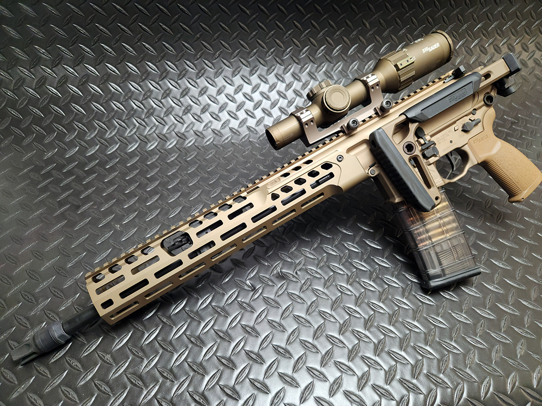 The MCX-SPEAR-LT is a gun that is a short-stroke gas piston rifle that has many of the features of the military rifle. The gun has a 13-inch lightweight ergonomic handguard with M-LOK attachment points along seven different sides. It uses the same SIG flat-blade match trigger as the XM5 inside an oversized trigger guard. The new MCX-SPEAR-LT is also compatible with aftermarket triggers should the end user decide to change it.