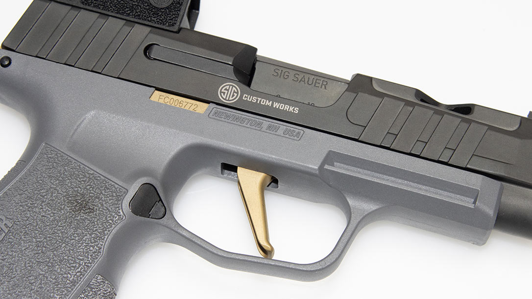 The feed ramp is also enhanced and leads to a fully supported chamber. Our sample was titanium-nitride coated, giving it a gold color, and enhanced corrosion, and wear resistance. The aesthetic also tied in well with the Sig Custom Works FCU.