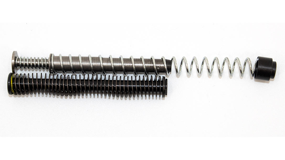 We’re pleased to report that for the 365 XL, the DPM System makes a remarkable difference. The kit includes three user-changeable springs to tune the action for the ammunition you’ll be running. This is important with a carry gun. Check that the gun will function with your defensive ammunition! For our build the longest spring worked fine and greatly reduced the recoil impulse.