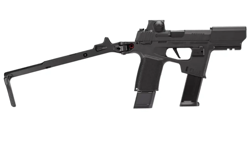 The SIG P365 FLUX is a bold step forward in micro-PDW evolution. It offers the speed, capacity, and stability of a PDW in a compact package and is light enough for real-world carry. The SIG P365 FLUX integrates a deployable brace, extended barrel, high-capacity dual mag feed, and concealed-carry holster to offer what SIG calls “the future of discreet firepower.” Ideal for those wanting micro-PDW handling and power with pistol-level concealability, the FLUX delivers a unique, polished option in the PDW handgun category.